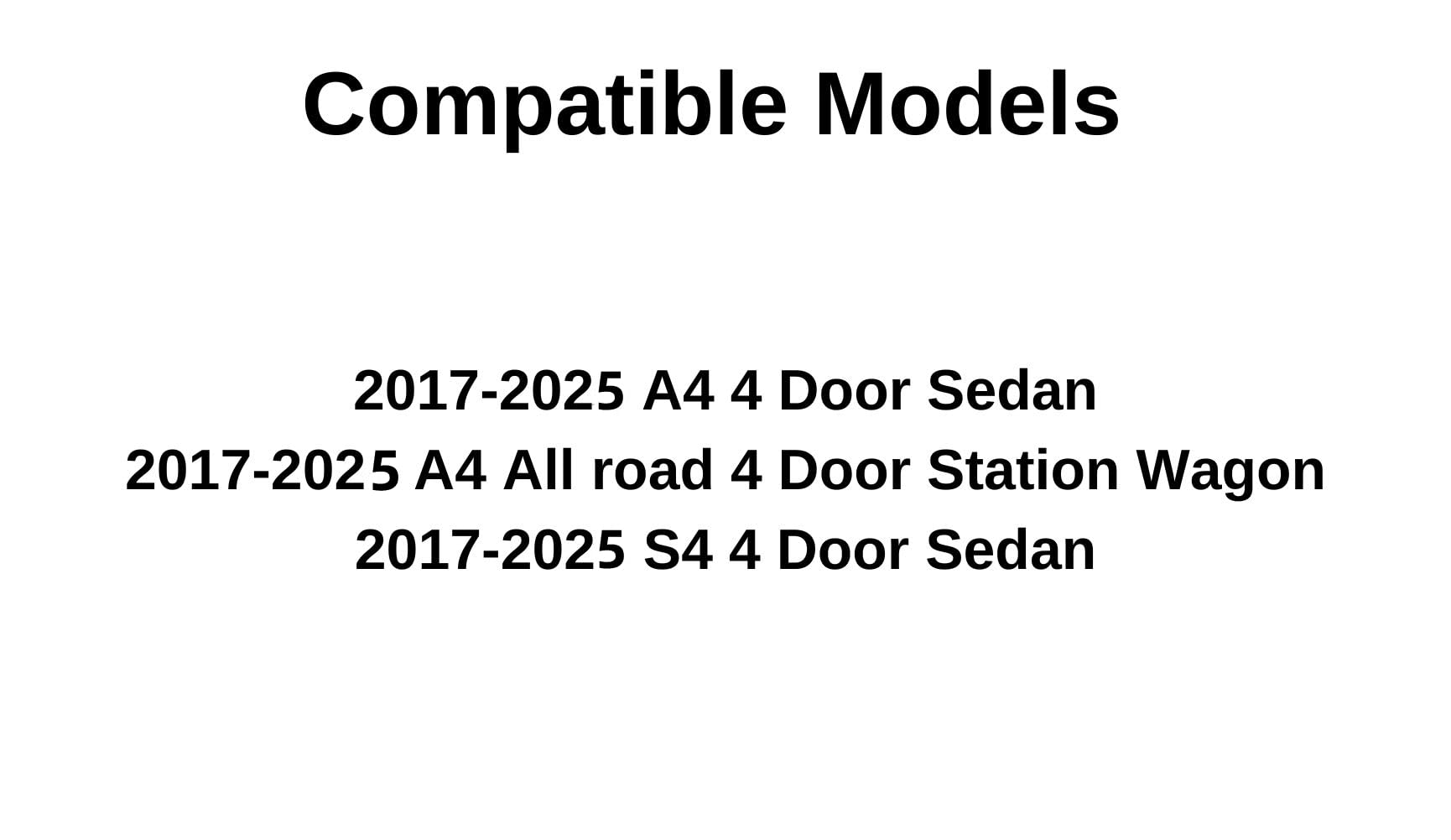 - Compatible Models: 2017-2025 A4 4 Door Sedan , 2017-2025 A4 Allroad 4 Door Station Wagon , 2017-2025 S4 4 Door Sedan