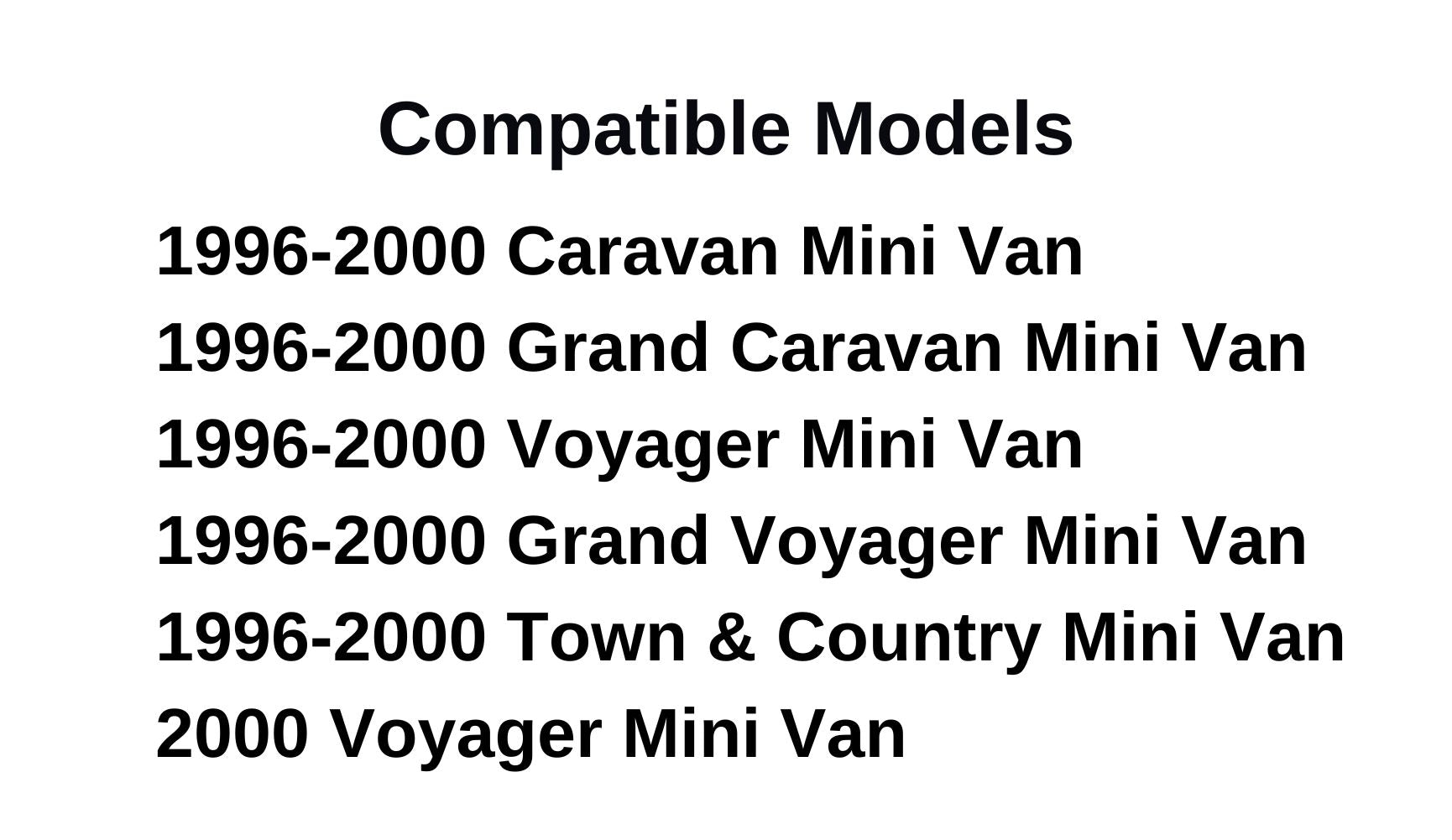 - Compatible Models : 2000 Grand Voyager , 2000 Voyager , 1996-2000 Town & Country , 1996-2000 Caravan , 1996-2000 Grand Caravan , 1996-2000 Grand Voyager , 1996-2000 Voyager