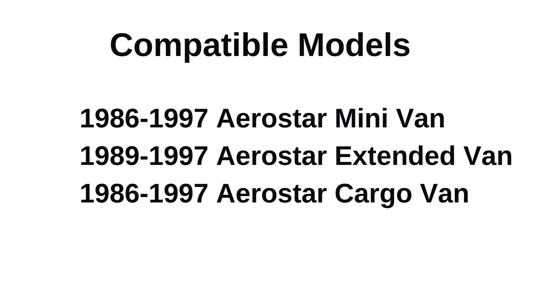 - Compatible Models: 1986-1997 Aerostar Mini Van , 1989-1997 Aerostar Extended Van , 1986-1997 Aerostar Cargo Van
