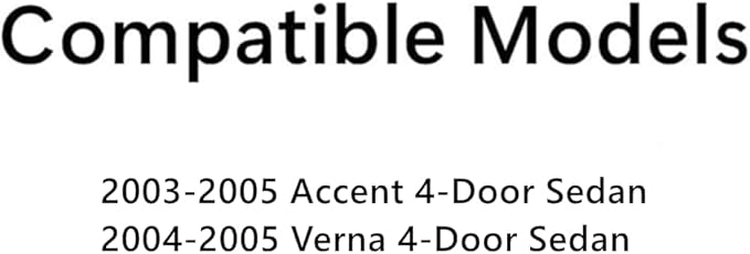 - Compatible Models: 2003-2005 Accent 4 Door Sedan, 2004-2005 Verna 4 Door Sedan