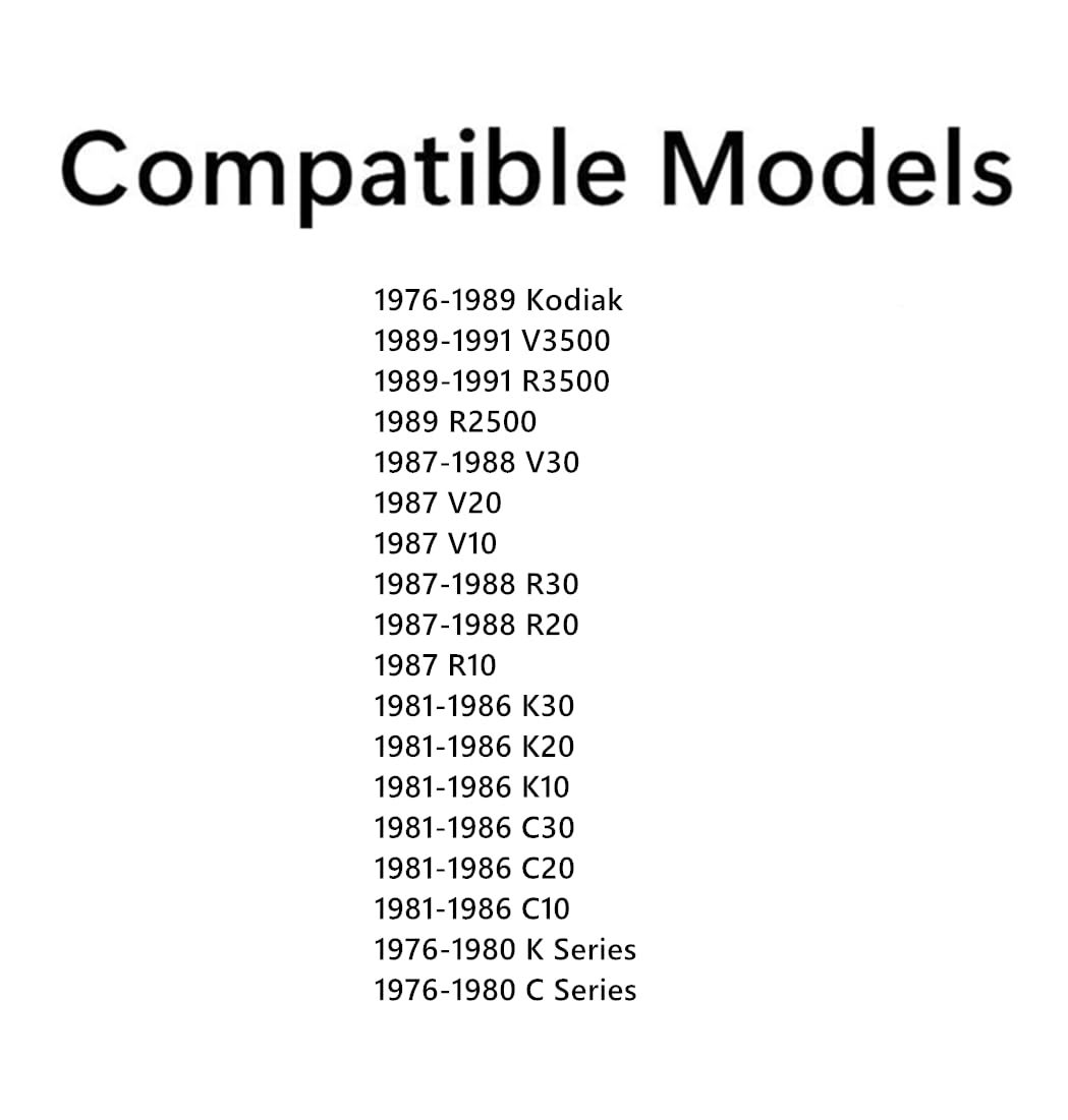 - Compatible Models: 1976-1989 Kodiak, 1976-1980 C Series Pickup, 1976-1980 K Series Pickup, 1981-1986 C10 Pickup, 1981-1986 C20 Pickup, 1981-1986 K10 Pickup C20, 1981-1986 K10 Pickup, 1981-1986 K20 Pickup, 1981-1986 K30 Pickup, 1987-1988 R10 Pickup, 1987-1988 R20 Pickup, 1987-1988 V10 Pickup, 1987-1988 V20 Pickup, 1987-1988 V30 Pickup, 1989-1991 R2500 Pickup, 1989-1991 V3500 Pickup