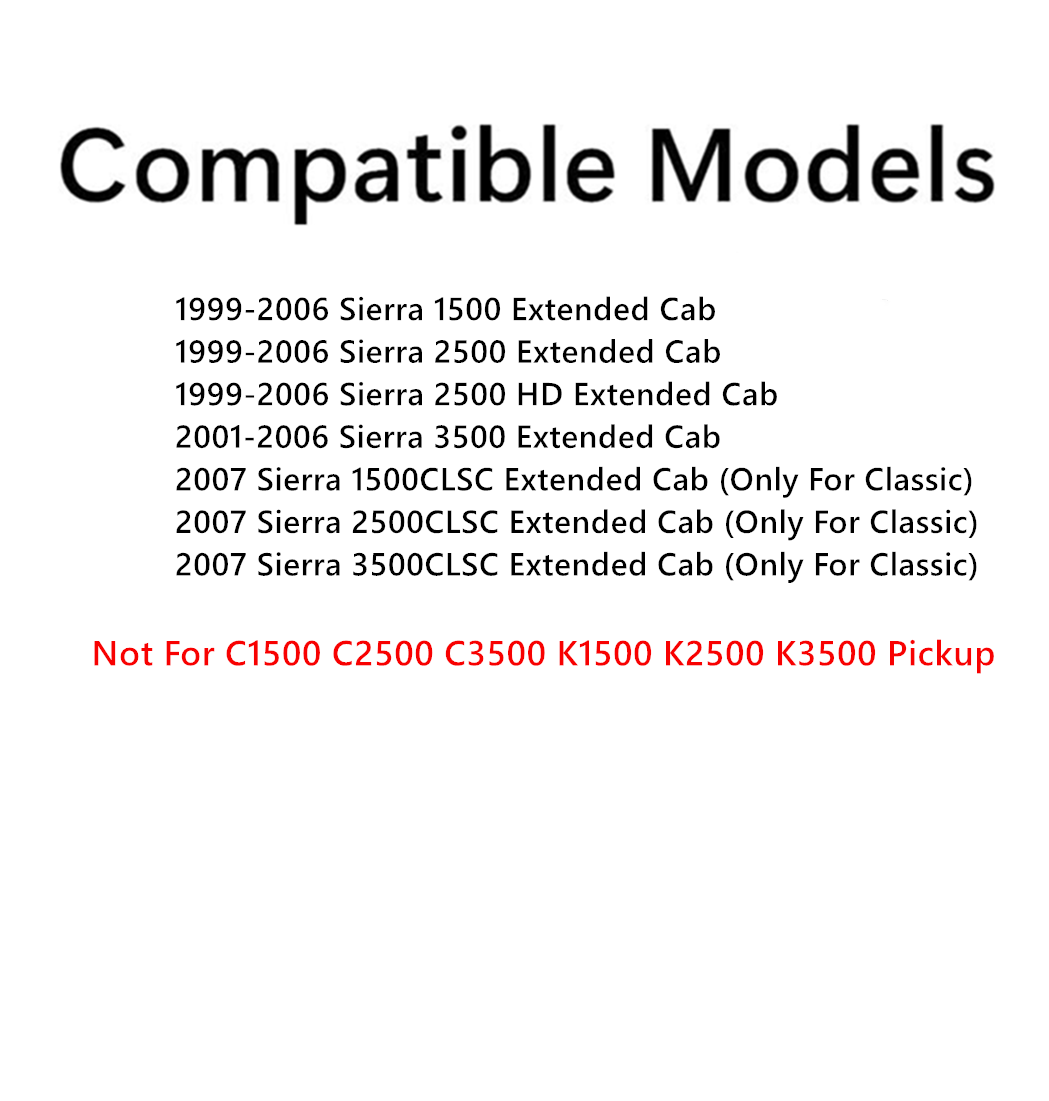 - Compatible Models: 1999-2006 Sierra (1500, 2500, and 3500) Extended Pickup , 2007 Sierra 1500Classic Extended Pickup, 2007 Sierra 2500Classic Extended Pickup, 2007 Sierra 3500Classic Extended Pickup